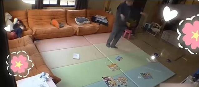 可梅婷家不一样,鞋子随便堆,玩具随处扔,桌上还有老人的药盒。